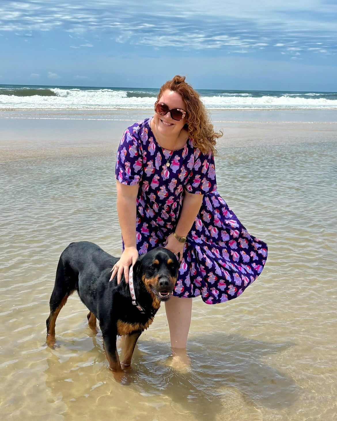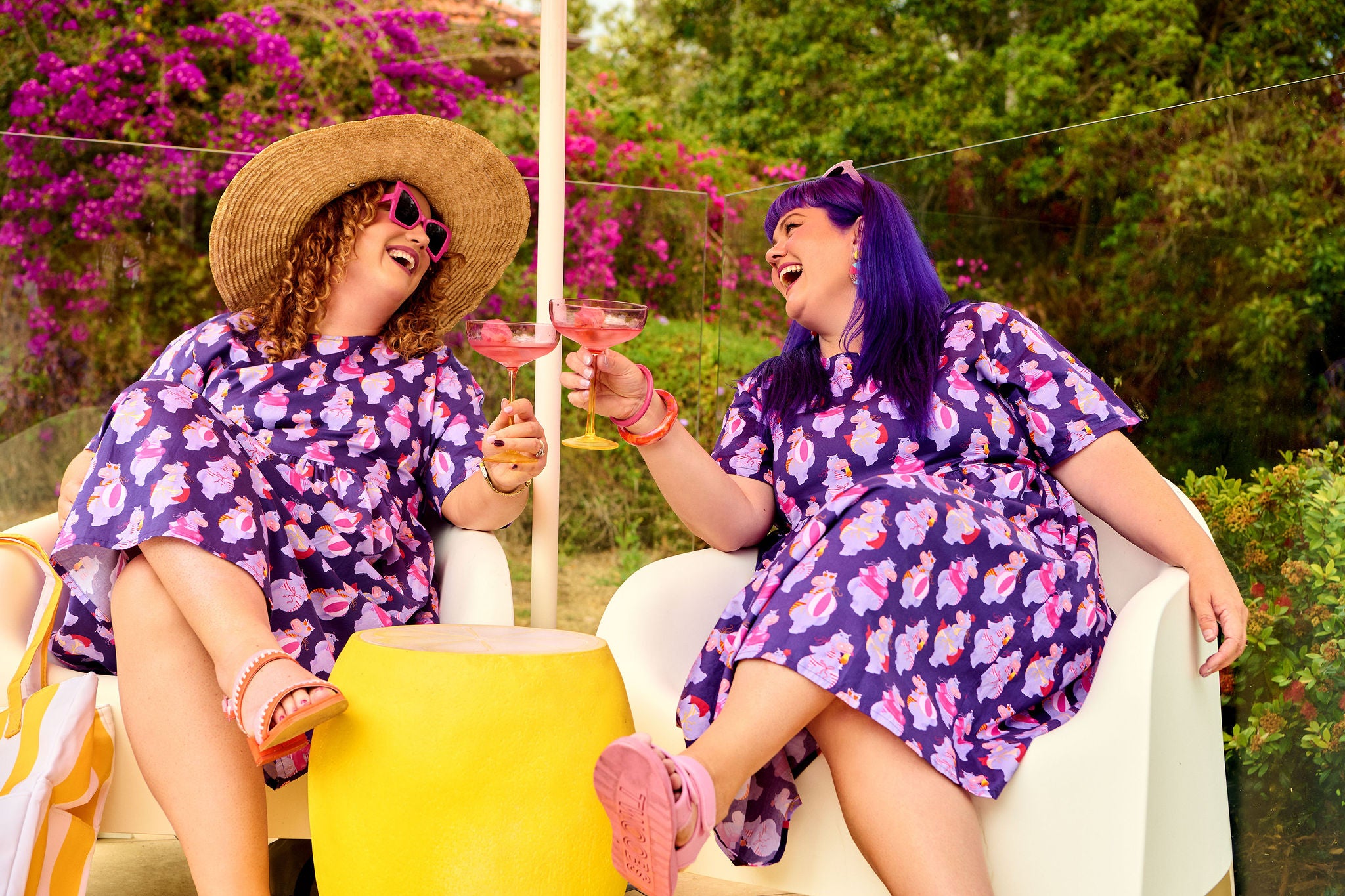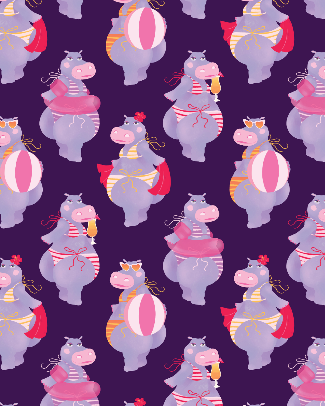 She is a symbol of confidence and fun. She tells a story of embracing the bikini and looking fabulous doing it! The deep purples and hot pinks are the ultimate splash of colour that this print deserves.
