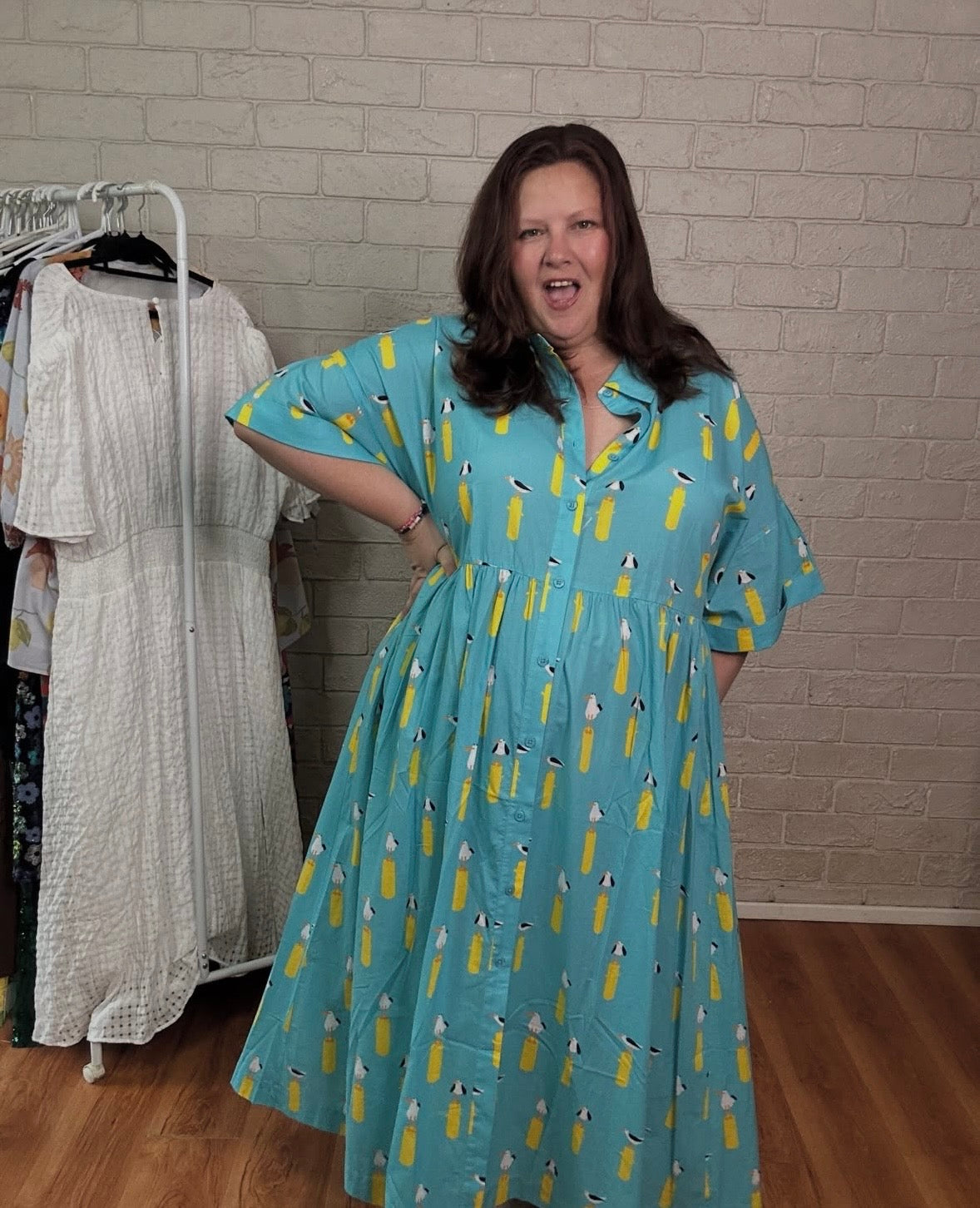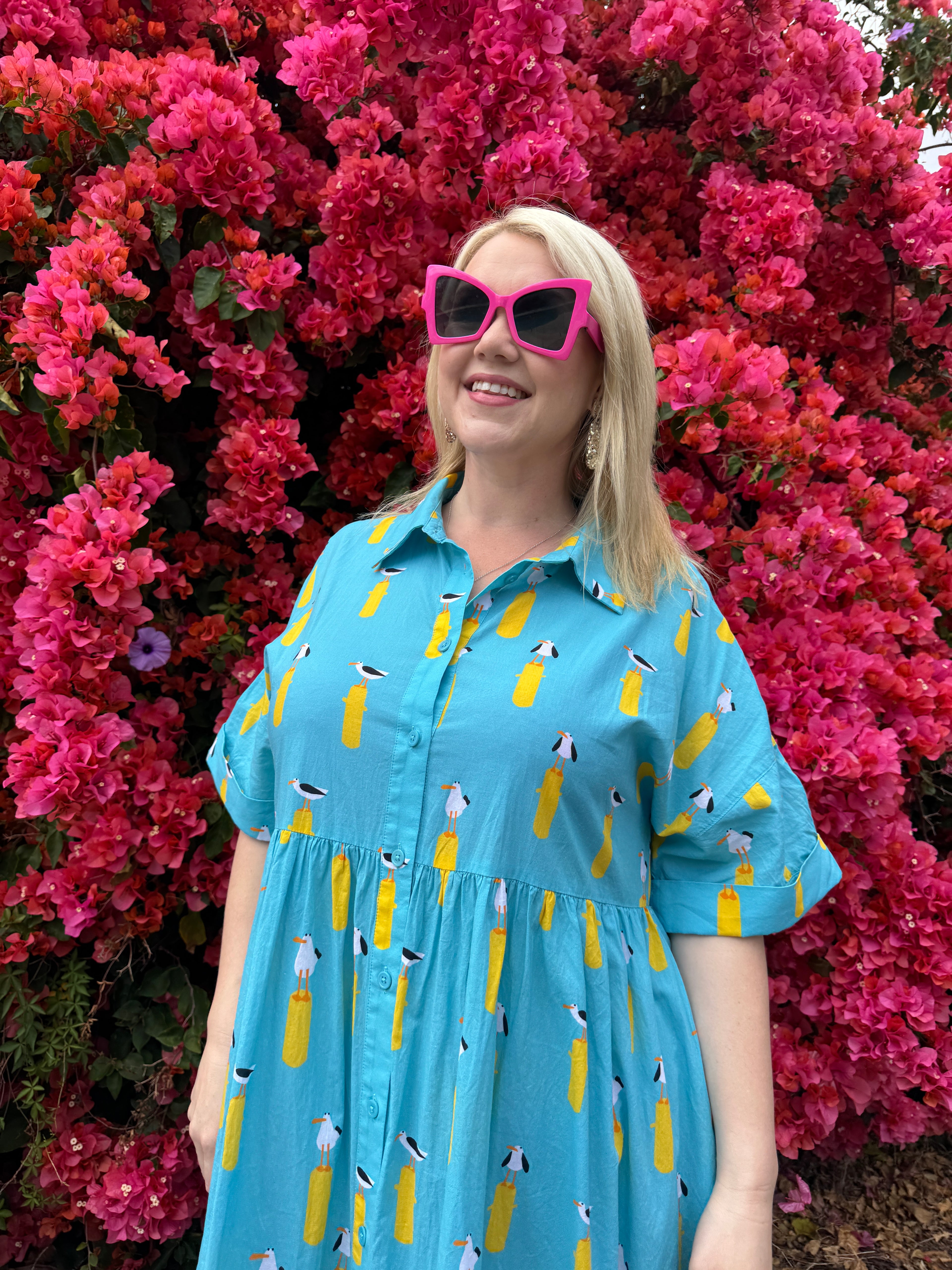 The iconic Aussie icon that is a seagull on a bollard. If they are not stealing ya hot chips, they are pretty darn cute. This exclusive print on vibrant teal will never come back the same, so shop fast if you love these cheeky little guys.