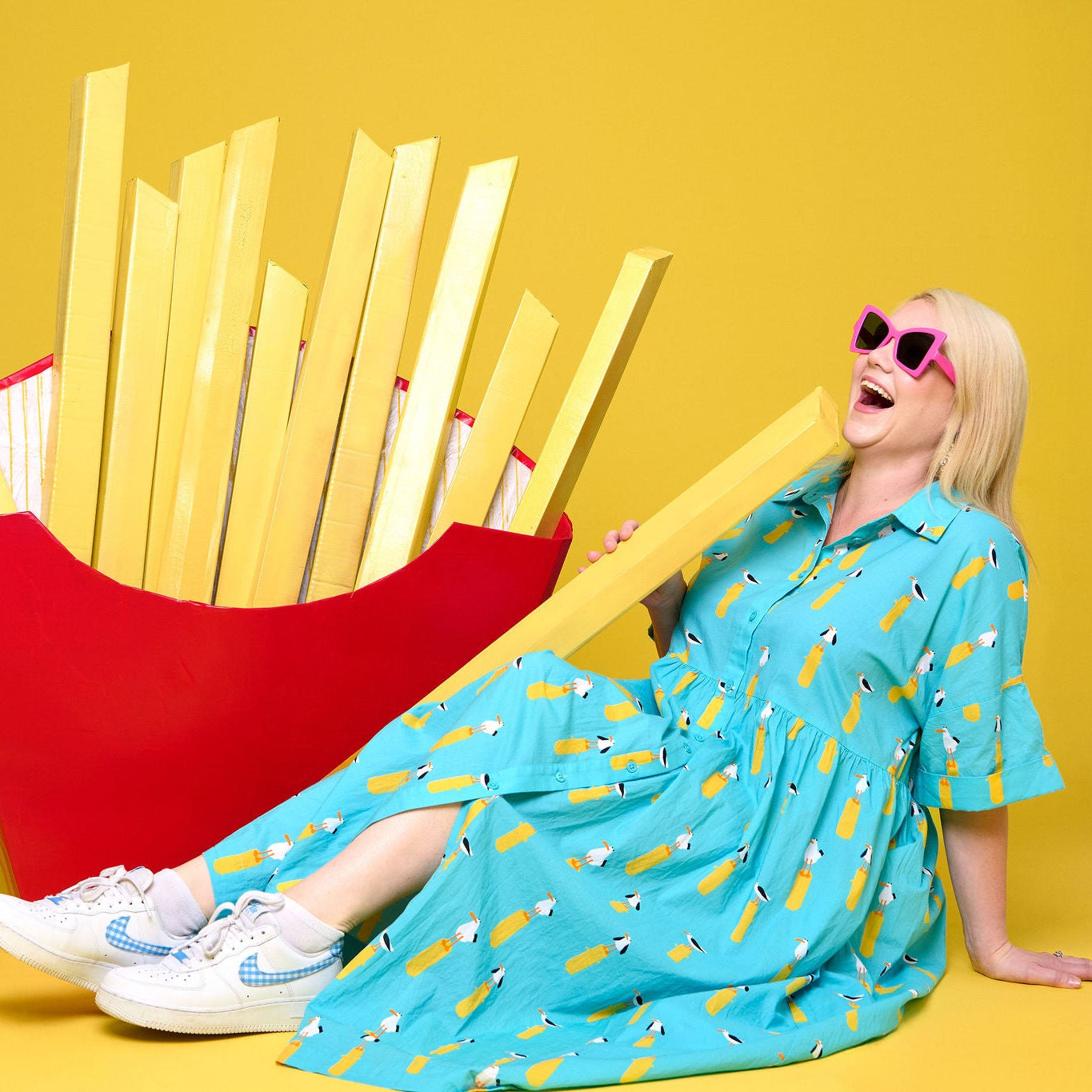 The brief for this dress was to create the lightest and most comfortable fabric for summer, without being see-through and still looking sophisticated. We absolutely nailed it, as this dress feels like you are naked. Made from 100% cotton, with buttons all the way down to create a V-neck or a slit if you desire, she is the epitome of summer comfort and bold colour.